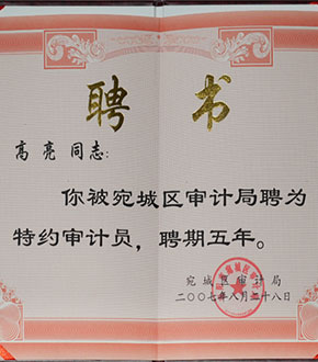 2006年11月被審計局特聘為“特約審計員”