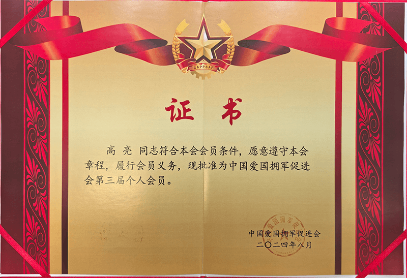 2024年8月當選中國愛國擁軍促進會會員